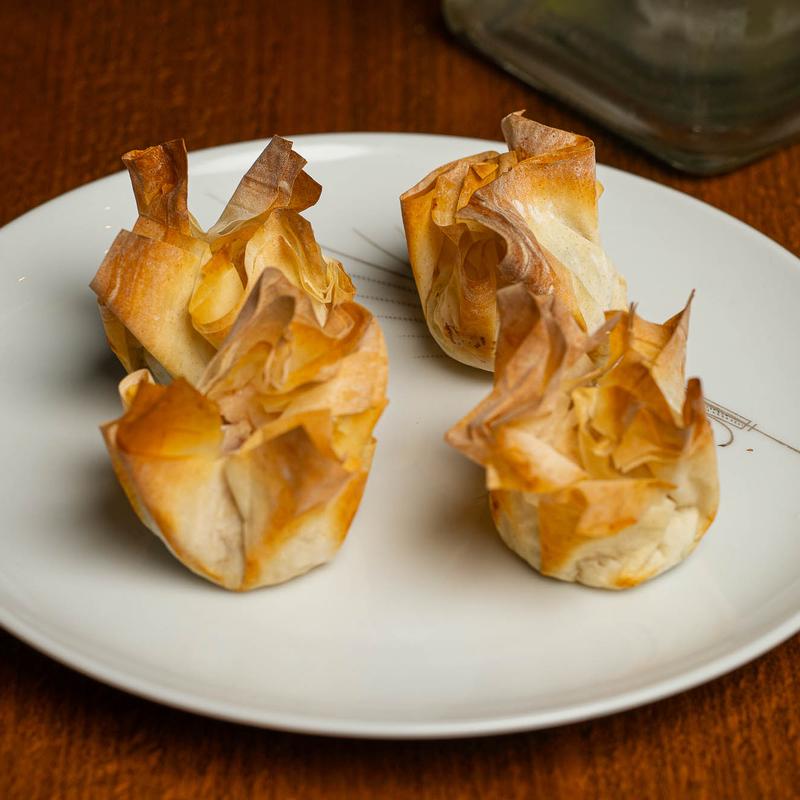 Sweet ricotta with smooth cinnamon undertones and chocolate in a phyllo dough cup.